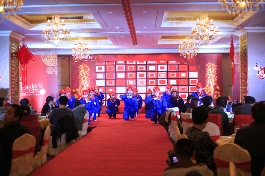 年会晚会现场充满了激情,热烈,活跃的气氛。 此次年会成为了员工们展示自我和团队的舞台,各部门同事带来了精彩纷呈的表演。从歌舞表演到语言类节目,形式各样,精彩纷呈。中间还穿插了《我是明星》的配音节目。 大家用心投入其中,为整台舞台增光添彩。随着各个精彩节目的上演,年会现场高潮不断。 领导与员工亲情互动,让歌声、掌声、欢呼声一直在会场上荡漾。