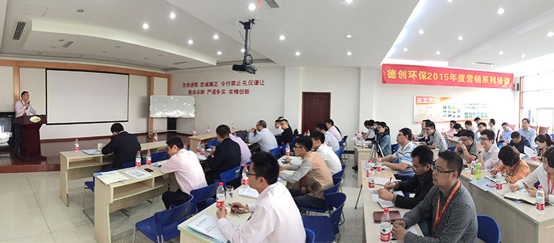 4月2-3日,德创环保人力资源管理中心在一楼培训室举行为期2天的2015年一季度营销培训,全体营销人员参加此次培训,公司及各事业部高层领导现身担当培训讲师。