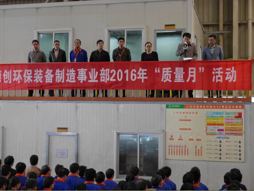 4月18日上午,德创环保装备制造事业部“质量月”活动动员大会在公司二车间举行。装备制造事业部全体一线员工参加此次启动大会,事业部各领导均到场动员并作重要讲话。