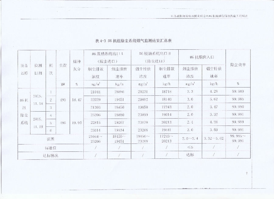 作为江苏射阳港发电有限责任公司#6机组超低排放改造工程项目湿式电除尘项目的总包单位,德创环保于2015年7月中旬进驻改造工程现场,在四个多月的施工过程中,有效克服工程建设中面临的场地紧张、任务重、交叉作业多等诸多困难,最终较好地完成了工程施工任务。此次工程验收监测中,德创环保所设计生产安装的湿式电除尘器各项参数均达到并优于设计要求,其中烟尘排放浓度为2.0~2.4mg/m3,赢得客户方的肯定。