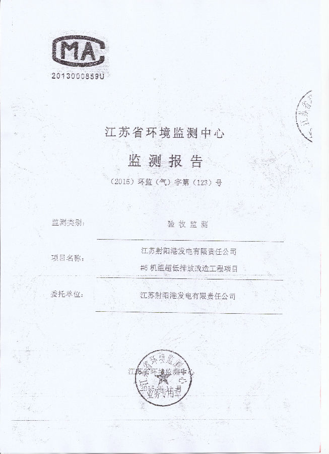 日前,由德创环保参与设计生产安装的江苏射阳港发电有限责任公司#6机组超低排放改造工程项目完成验收监测,江苏省环境监测中心对试运行的项目工程进行一系列的监测分析,其数据结果均符合国家相关标准,成功实现了预期效果。