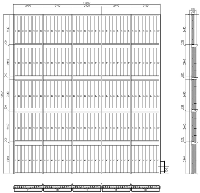 由于原烟道截面流速过高,将烟道尺寸扩大,使经过除雾器段的流速降低至5m/s左右,保证烟气中的浆液滴能有效得被除雾器叶片拦截。下图为除雾器叶片布置图