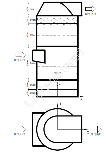 出口烟道高H出口:5090mm,宽W出口:10180mm,突出塔体长度L出口:1410mm