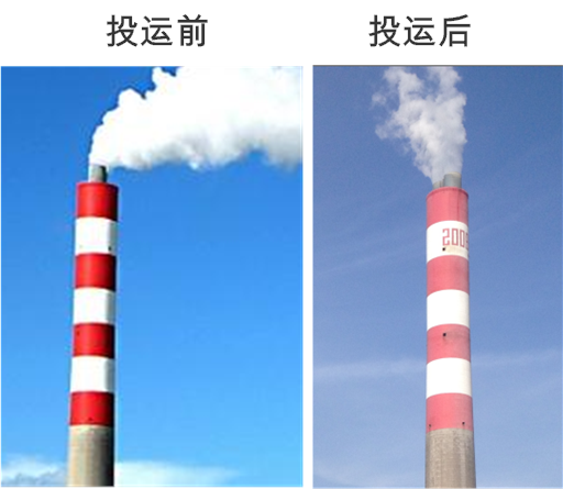 图 5国电北仑电厂#7机组WESP投运前、后烟囱排放对比图