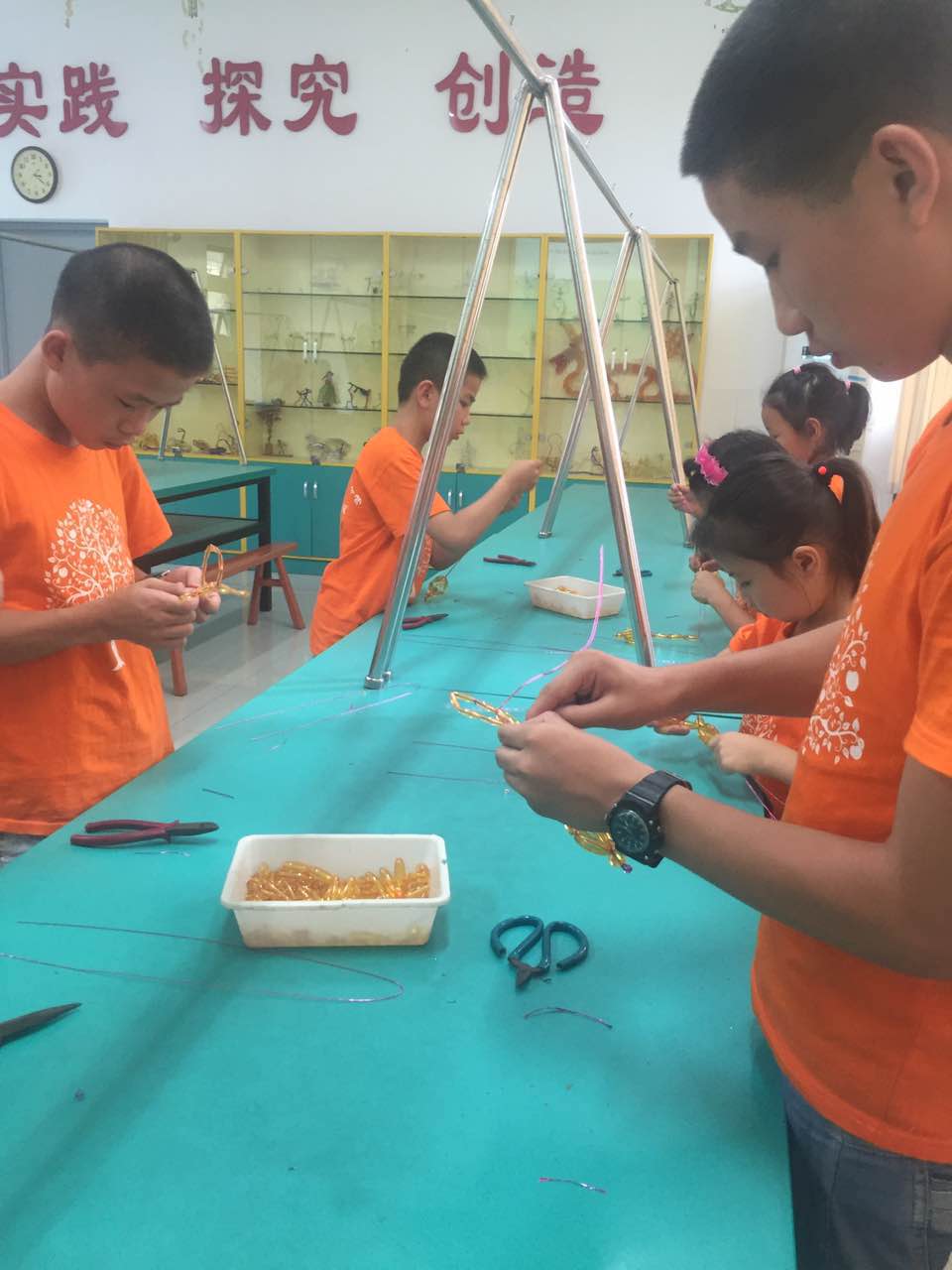 经过几节铁艺课的学习,小朋友们对铁艺的兴趣越来越高涨,手艺也越来越纯熟。