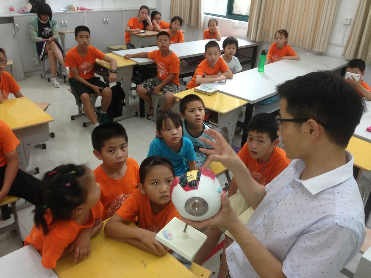 在课堂上,老师生动讲解如何卫生用眼的小知识,瞧这专注的小眼神