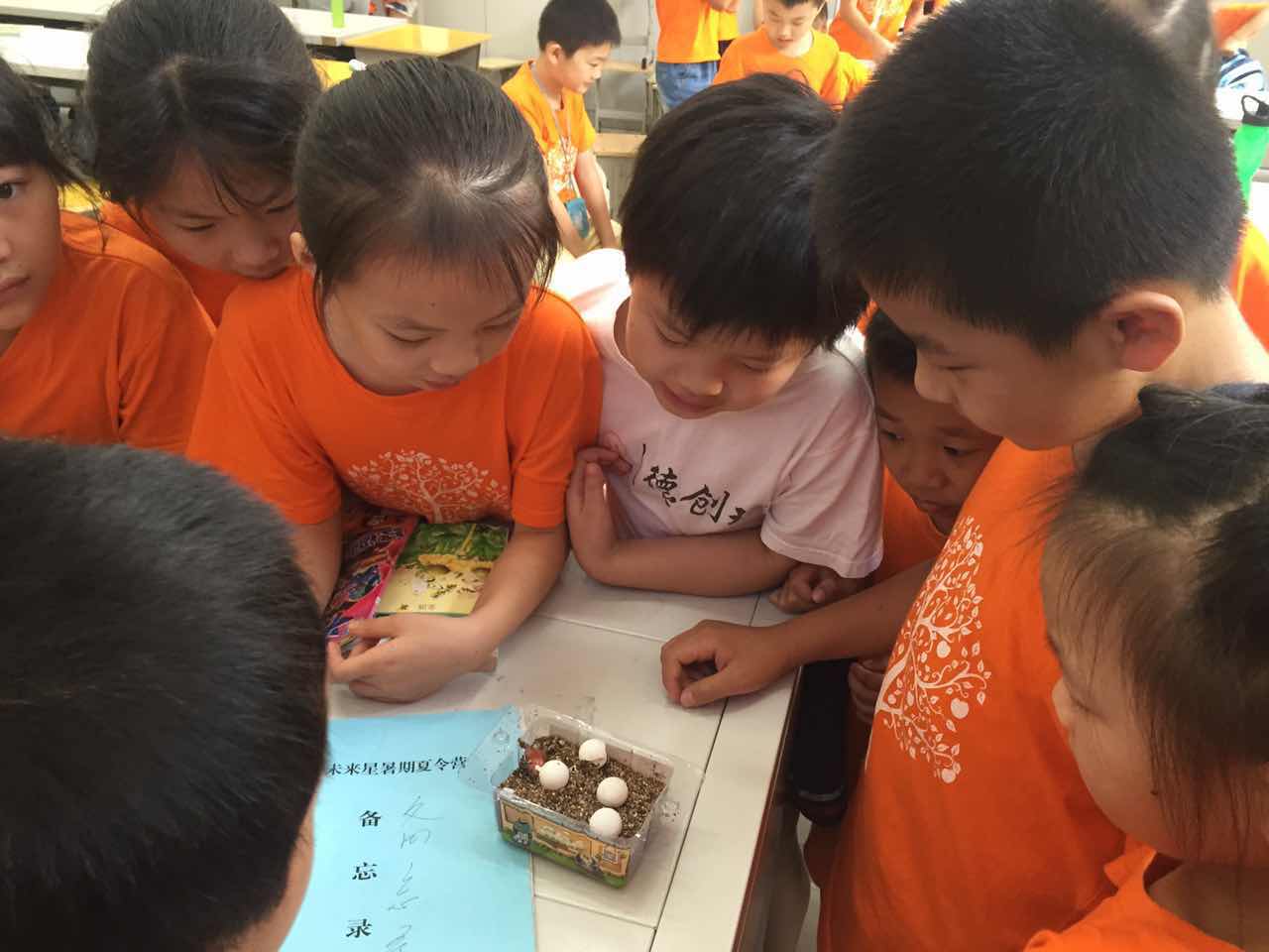 猜猜小朋友们围在一起看蛋是几个意思?没错,经过老师的指导,已经掌握孵化乌龟蛋的知识点的他们,正静静等待小乌龟破壳而出的那一刻。