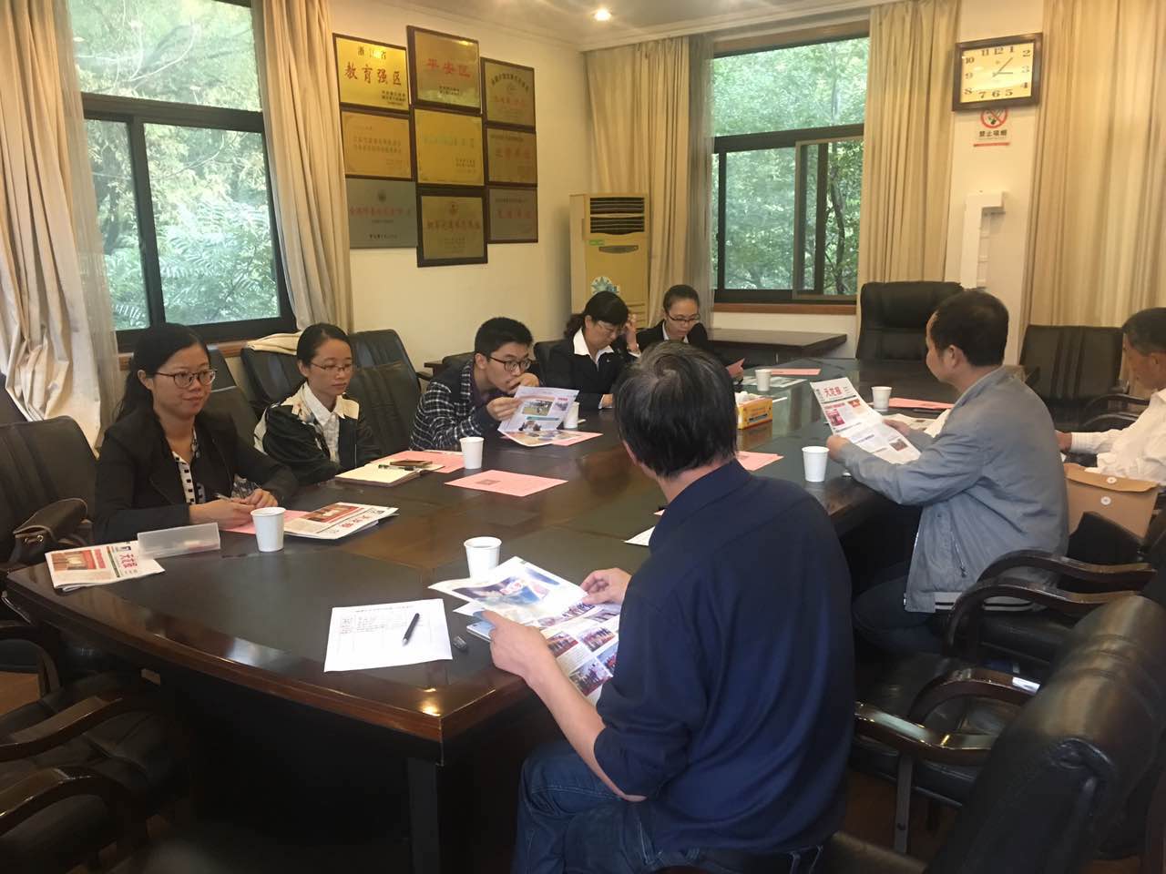 会议上各企业报编辑人员简单介绍了本企业报创编情况,《德创人》编辑也就报刊编辑中素材采编、稿酬制度与通讯员队伍建设等情况与各企业同行进行分享,共同寻求创编工作中更好的经验方法。接下来与会人员探讨了相关活动方案,以加强越城区各企业间的联系与交流。