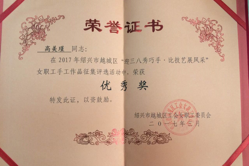 近期,绍兴市越城区工会女职工委员会组织了“迎三八秀巧手·比技艺展风采”女职工手工大赛,德创环保积极参加比赛。此次比赛,德创环保共选送了五样作品参赛,有为孩子亲手织就的温暖毛衣,有用纸杯巧妙剪贴的家居桌椅,有逼真的“蓝色妖姬”,有精致可爱的十字绣……全都显出德创女员工的巧手慧心,令人叹服。