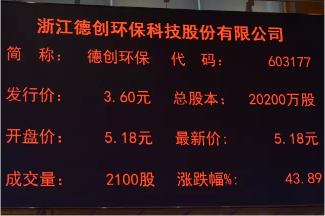 新起点 新征程——德创环保成功登陆上交所主板