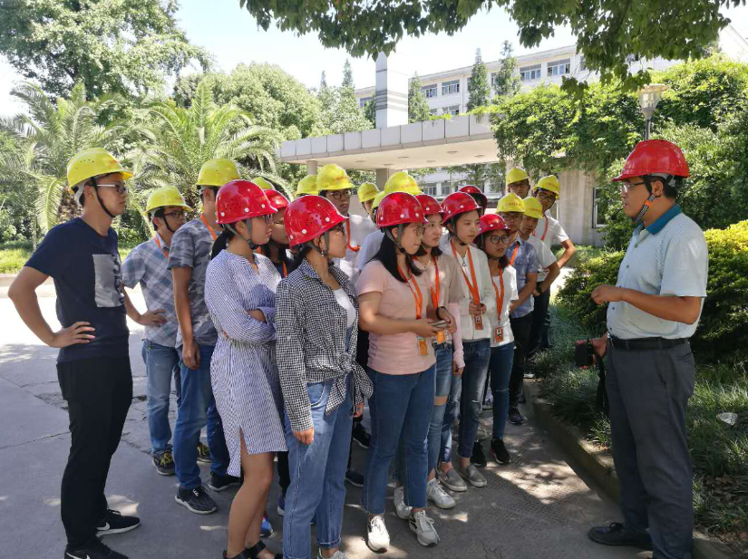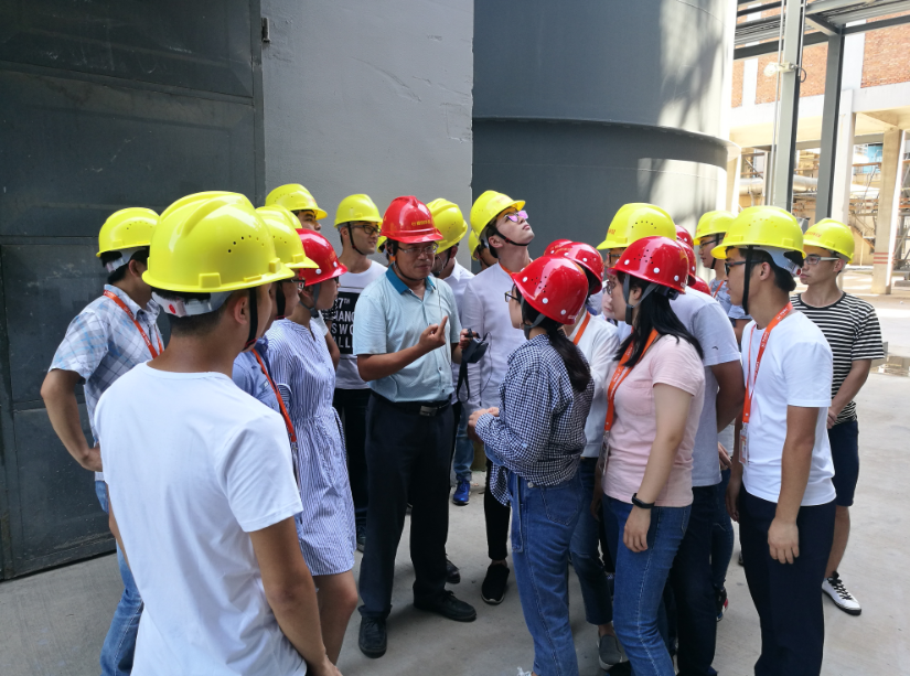 井经理带领大学生新员工们进行参观,现场讲解脱硝、除尘、脱硫及低氨燃烧改造等常见烟气处理设备的特性,并结合实际详细介绍电厂烟气排放情况及治理原理。