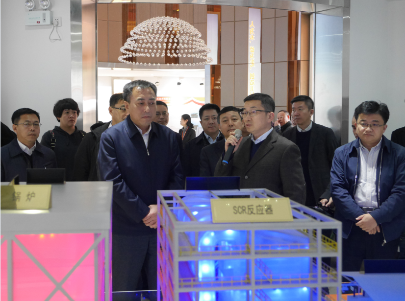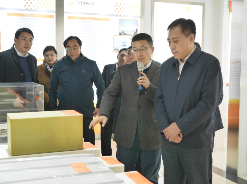 此次考察走访中,王书记等领导参观了德创环保研发中心。公司总裁赵总向领导们介绍了公司发展历程、生产规模、技术特性等情况,尤其就公司环保岛理念与催化剂用途、市场前景进行深入介绍。