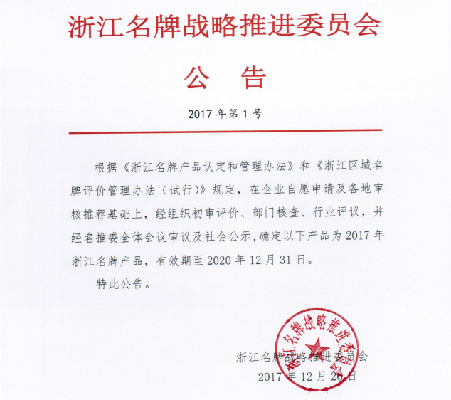 近日,根据浙江名牌战略推进委员会的【2017】1号文件,德创环保烟气治理装备被评为2017年浙江省名牌产品,该荣誉的获得,进一步彰显了德创环保的品牌实力,德创环保将珍惜荣誉,持续创新,为市场和客户提供更过硬的产品。