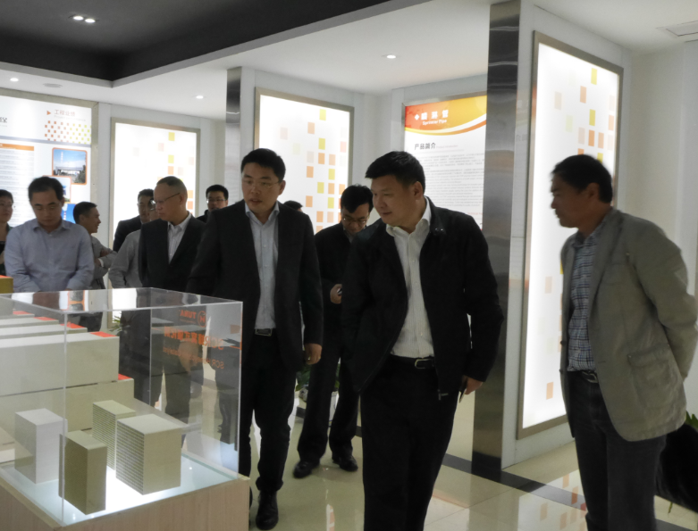 凌志峰副市长等领导一行在金董陪同下参观了公司研发中心。金董向凌志峰副市长介绍了德创环保的发展现状、产品特点等情况。凌副市长充分肯定了德创环保近年来的发展成绩,并指出德创环保作为国内环保行业的优秀企业,要进一步持续创新,立足长远,为绍兴企业的发展增光添彩!