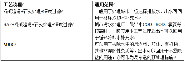城市污水处理厂二级出水作为电厂水源需综合分析中水来水水质情况,结合以上几种工艺系统的技术经济比较、当地环保部门要求及厂区总平面规划等最终确定适用于不同工程条件的工艺流程系统。