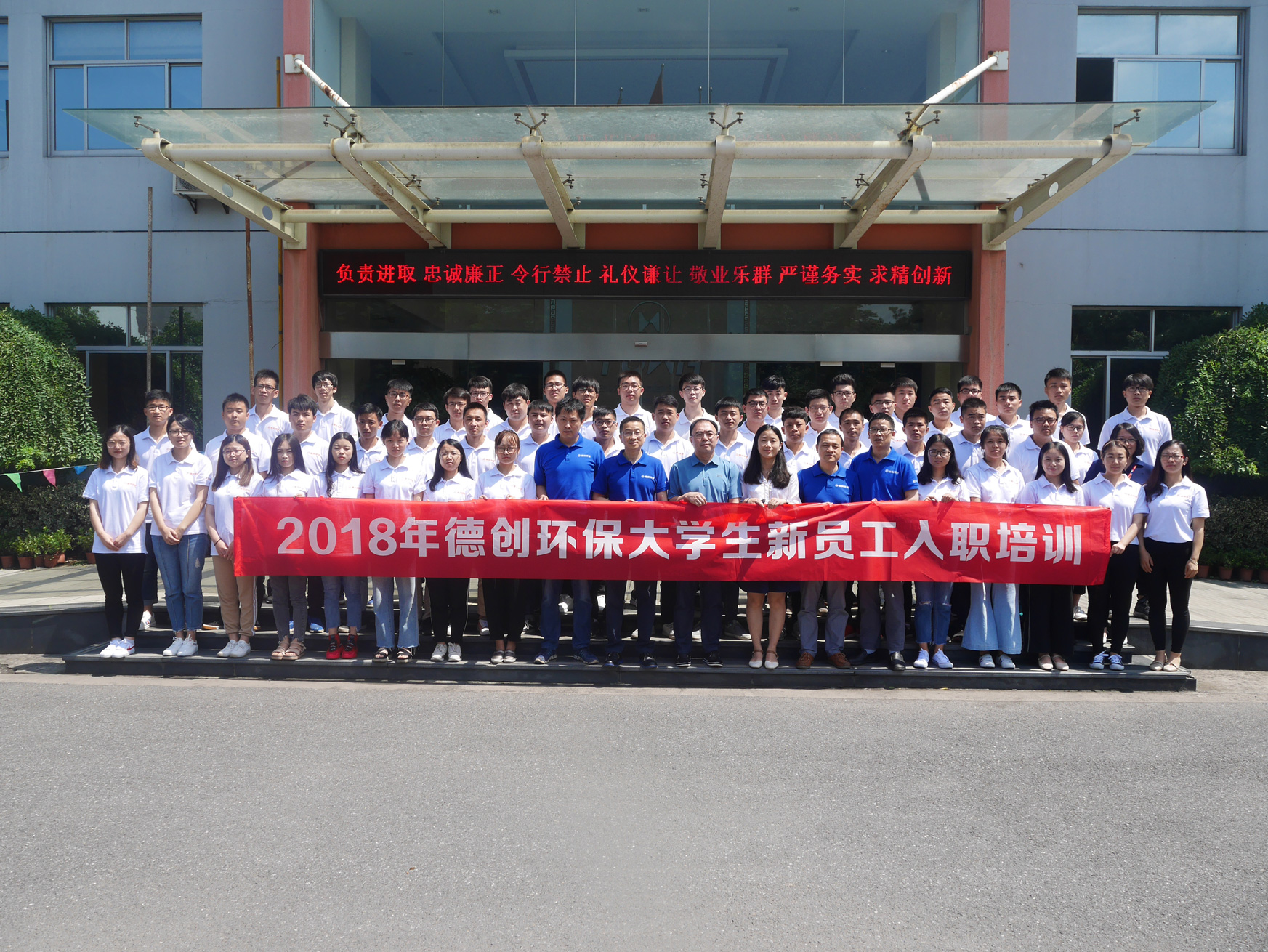 7月19日,德创环保举办了为期11天的新员工入职培训。此次培训,针对51名新入职的大学应届毕业生,旨在让公司新进人员加快学生到员工的角色转换,快速融入工作环境,适应岗位,增强新进大学生员工对公司的归属感和责任感。