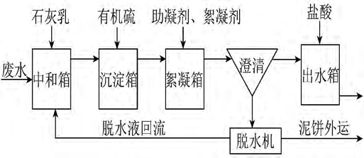 该工序工艺采用絮凝沉淀系统,主要通过化学沉淀去除重金属、硬度以及悬浮物等污染物,还会产生不少高含盐废水,对自然界还会造成不小的水环境污染。