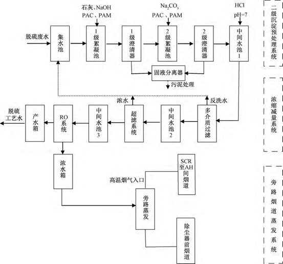 1)实现火电厂废水近零排放的关键是实现脱硫废水零排放