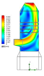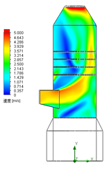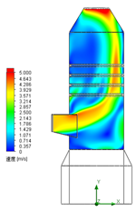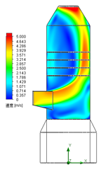 整个吸收塔及导流环模型的数值模拟通过SolidWorks Flow Simulation软件完成,吸收塔模拟边界条件为:入口烟气流量330000 Am3/h,温度130℃。